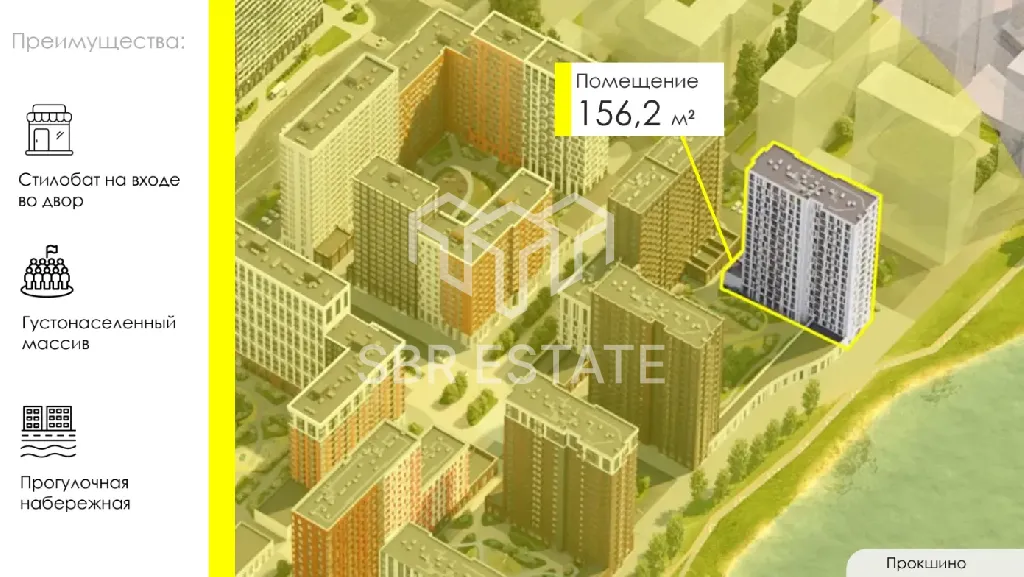 Помещение располагается на 1-м этаже первой линии жилого комплекса. В шаговой доступности от помещения, остановка общественного транспорта. Помещение находится в окружении сетевых арендаторов. Интенсивный автомобильный и пешеходный трафик вдоль помещения. Есть место для размещения рекламы. Парковка перед фасадом.