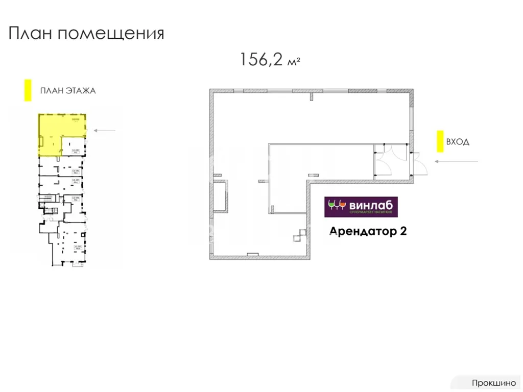 Продажа торгового помещения с арендатором «ВинЛаб» площадью 156,2 м2 расположенного по адресу: Москва, Новомосковский административный округ, район Коммунарка, Прокшинский проспект, 7 (12 минут пешком от метро Прокшино).