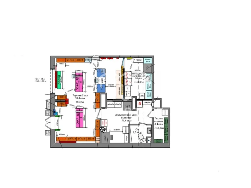 В помещении открытая планировка, отдельный вход с фасада, высота потолка 3,5 м, витринные окна по фасаду. Электрическая мощность 11 кВт.