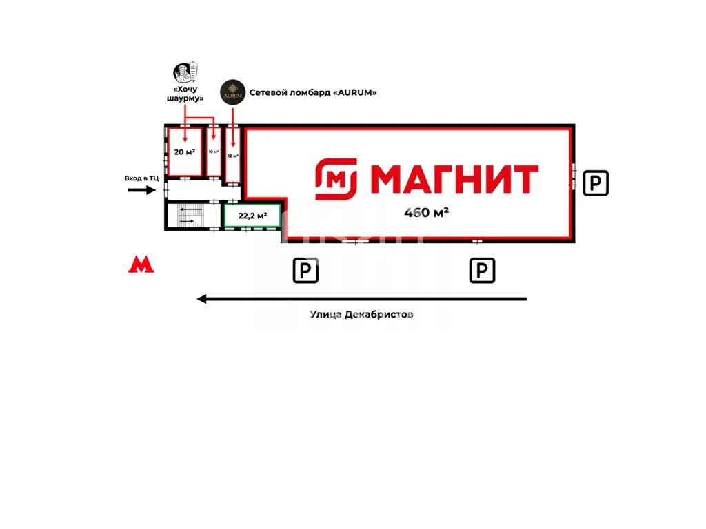 Помещение располагается на 1-м этаже первой линии в центре жилого массива. В шаговой доступности от помещения, остановка общественного транспорта, метро. Помещение находится в окружении сетевых арендаторов. Интенсивный автомобильный и пешеходный трафик вдоль помещения. Есть место для размещения рекламы. Парковка перед фасадом.