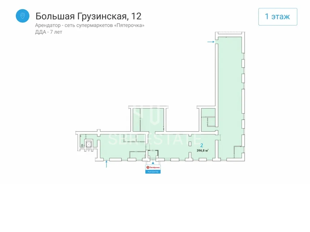 Продажа готового арендного бизнеса с арендатором «Пятерочка» площадью 396,8 м2 расположенного по адресу: Москва, Большая Грузинская улица, 12 (5 минут пешком, 2 минуты на транспорте от метро Баррикадная).