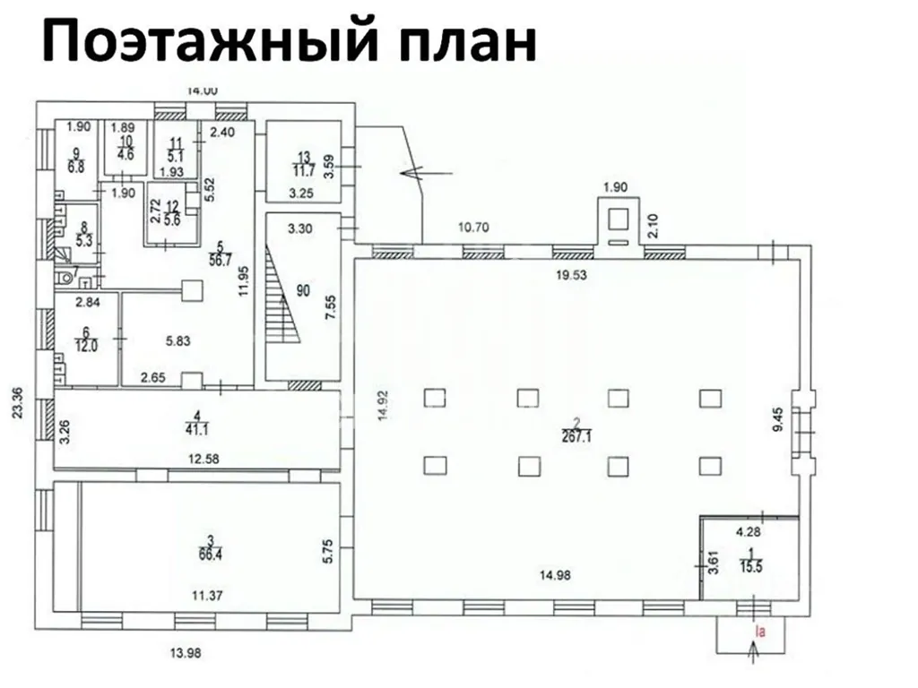 В помещении открытая планировка, отдельный вход с фасада, высота потолка 4,1 м, витринные окна по фасаду. Электрическая мощность 89 кВт.