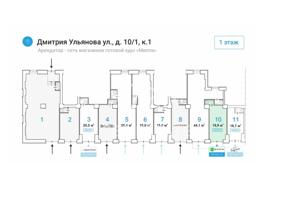Арендатор: «Милти» это сеть магазинов готовой еды от шеф-поваров для здорового питания, месячная арендная плата 180 000 рублей.