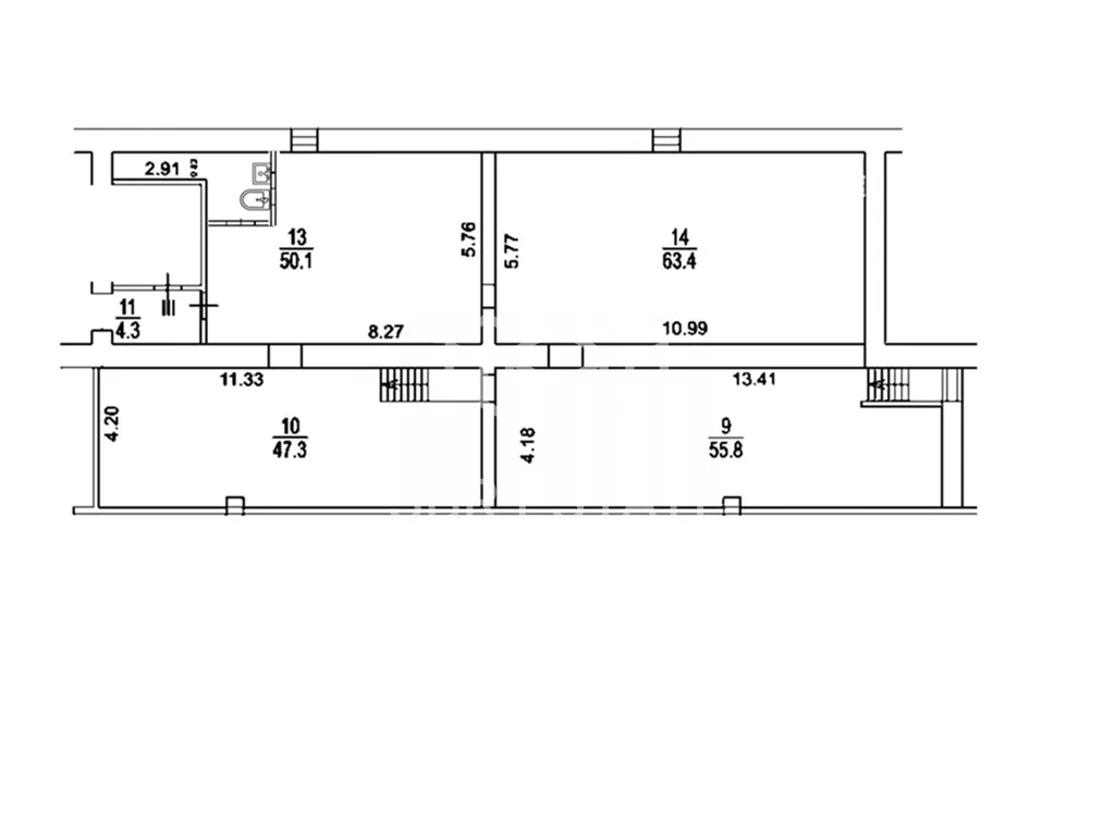 В помещении открытая планировка, высота потолка 2,7 м. Электрическая мощность 15 кВт.