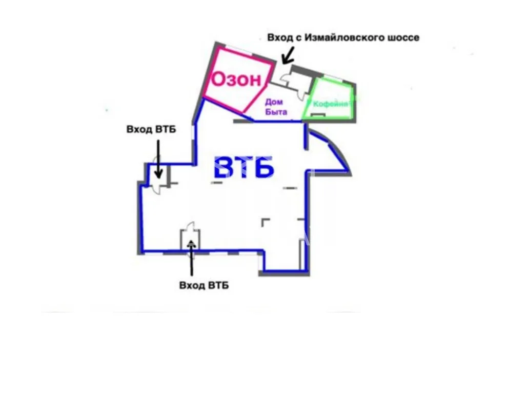 Продажа торгового помещения с арендаторами «Банк ВТБ», «Озон», «Дом быта», «Кофейня» площадью 316,1 м2 расположенного по адресу: Москва, Измайловское шоссе, 20 (9 минут пешком, 3 минуты на транспорте от метро Семёновская).