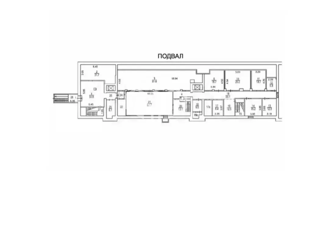 В помещении смешанная планировка, отдельный вход с фасада, высота потолка 2,3 м, витринные окна по фасаду. Электрическая мощность 80 кВт.