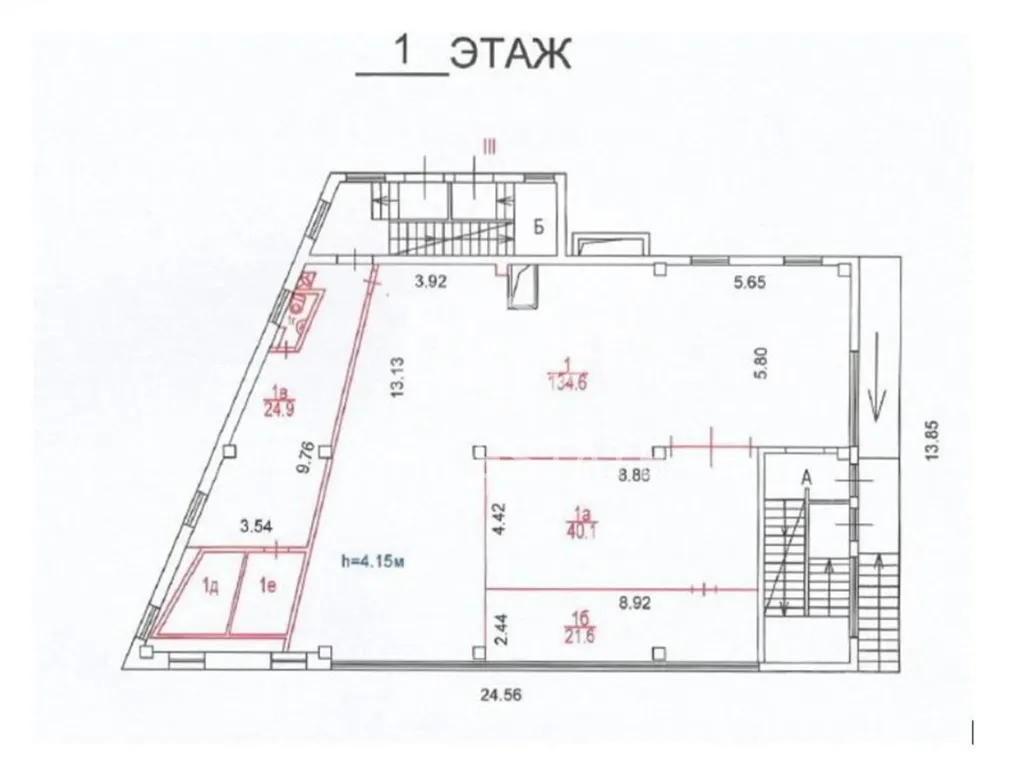 В помещении открытая планировка, отдельный вход с фасада, высота потолка 3,5 м, витринные окна по фасаду. Электрическая мощность 115 кВт.