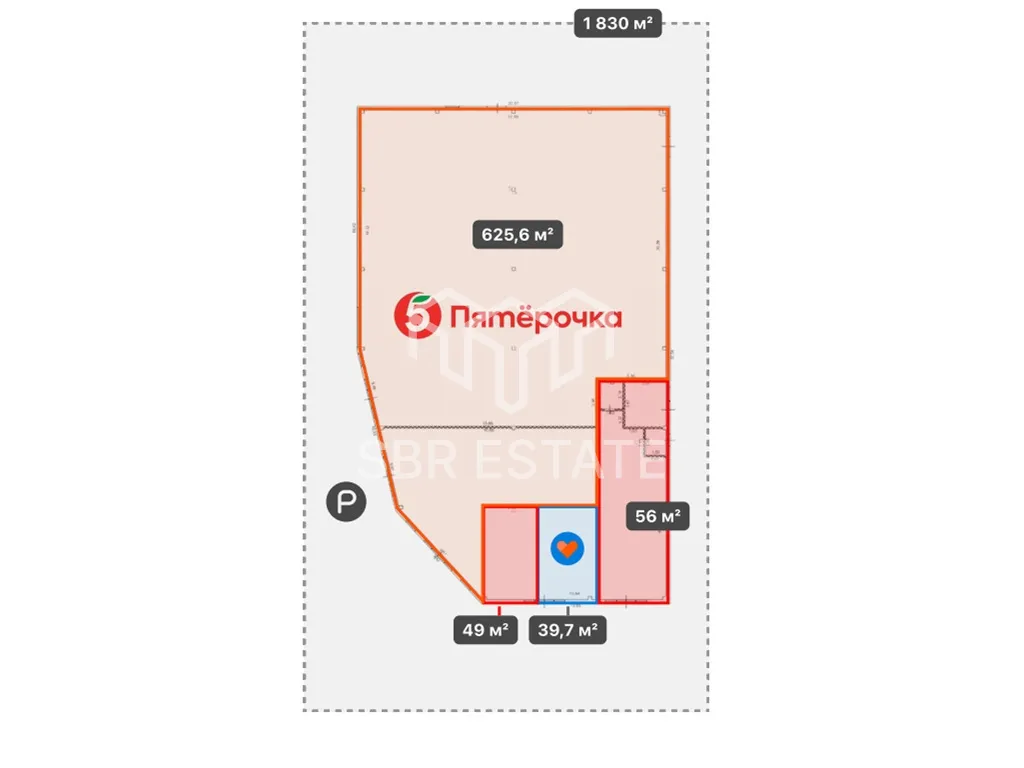 Арендаторы: «Пятерочка»(625,6 м2), аптека «Здравсити»(39,7 м2), 105 м2 -вакантная площадь, общая потенциальная месячная арендная плата 1 270 900 рублей, 5% от РТО.