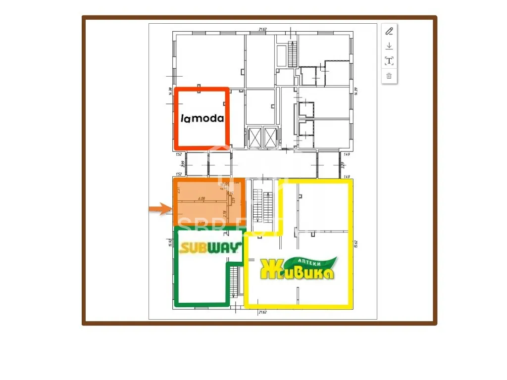 Помещение располагается на 1-м этаже первой линии жилого комплекса. В шаговой доступности от помещения, остановка общественного транспорта. Помещение находится в окружении сетевых арендаторов. Интенсивный автомобильный и пешеходный трафик вдоль помещения. Есть место для размещения рекламы. Парковка перед фасадом.