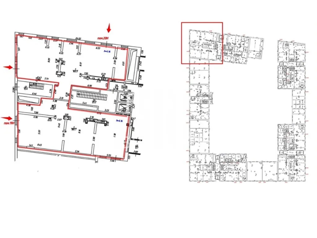 В помещении открытая планировка, угловое помещение, отдельный вход с фасада, высота потолка 3 м, витринные окна по фасаду. Электрическая мощность 63 кВт.