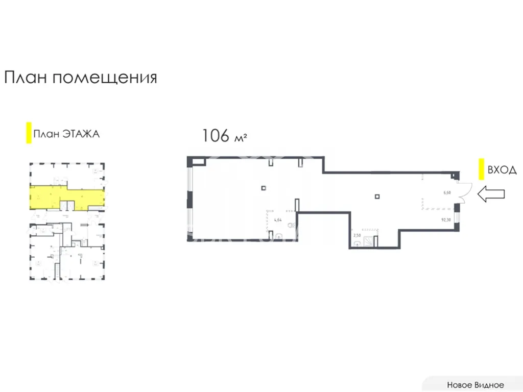 Продажа торгового помещения площадью 106 м2 расположенного по адресу: Московская область, Ленинский городской округ, жилой комплекс Новое Видное, 13.2 ( 60 минут на транспорте от метро Домодедовская).