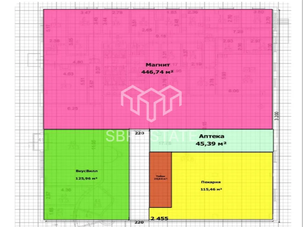 Арендатор: «Магнит», "ВкусВилл", Аптека, Пекарня, табак общий месячный арендный поток 3 970 000 рублей. Договор аренды подписан с 2025 года по 2035 год. Ежегодная индексация 5%.