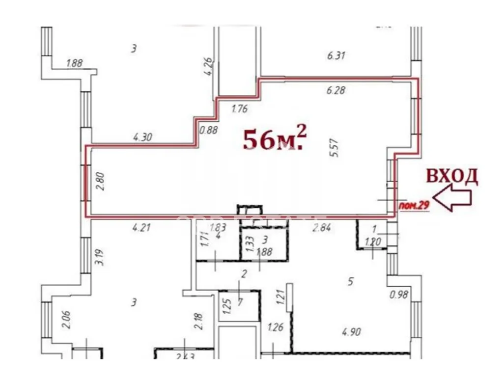 В помещении открытая планировка, отдельный вход с фасада, высота потолка 4,3 м, витринные окна по фасаду. Электрическая мощность 20 кВт.