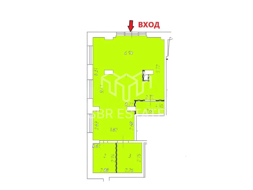 В помещении открытая планировка, отдельный вход с фасада, высота потолка 5,5 м, витринные окна по фасаду. Электрическая мощность 11 кВт.