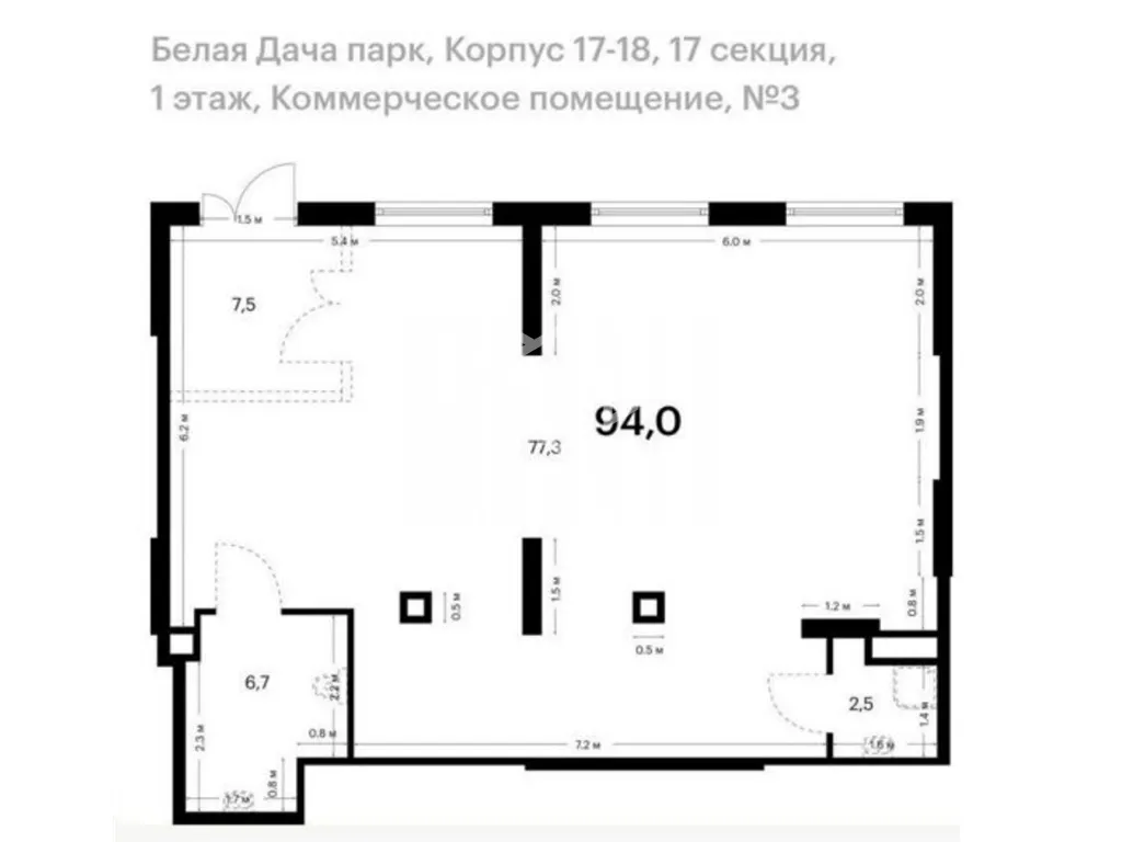 В помещении открытая планировка, отдельный вход с фасада, высота потолка 4,3 м, витринные окна по фасаду. Электрическая мощность 15 кВт.