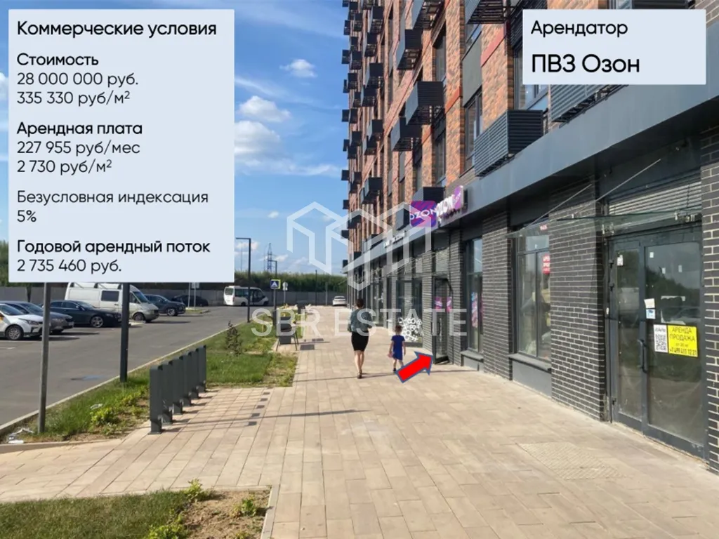 Продажа торгового помещения с арендатором «Озон» площадью 83,5 м2 расположенного по адресу: Московская область, городской округ Люберцы, посёлок городского типа Мирный, жилой комплекс Томилино Парк, к6.1 (17 минут на транспорте от метро Котельники).