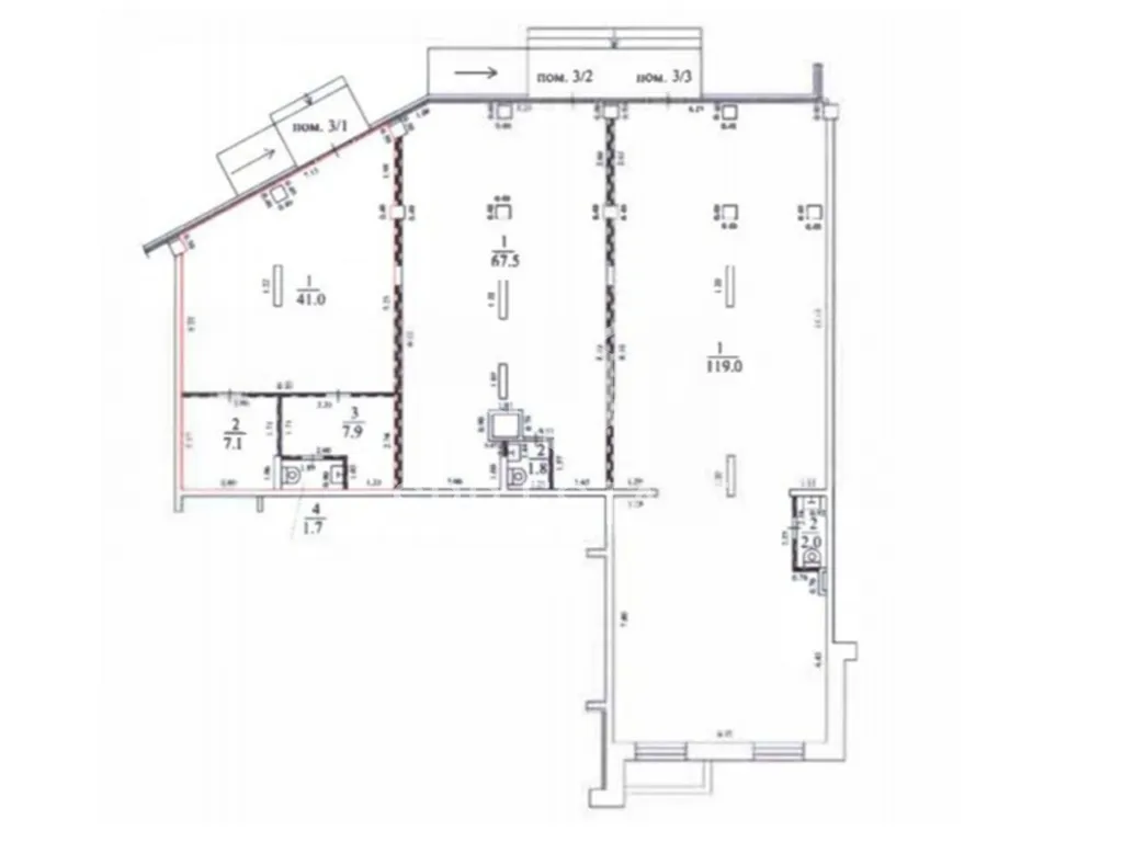 В помещении открытая планировка, отдельный вход с фасада, высота потолка 3 м, витринные окна по фасаду. Электрическая мощность 12 кВт.