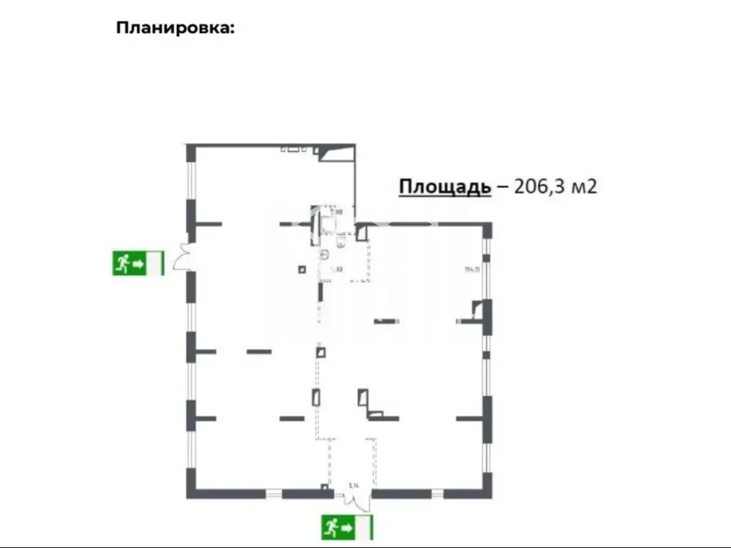 Помещение площадью 206,3 м2, располагается на 1 этаже, открытая планировка, отдельный вход с фасада, высота потолка 4 м, витринные окна по фасаду. Электрическая мощность 41,3 кВт. Парковка перед фасадом. Место для размещения рекламы. Дом сдан в 2024 году.