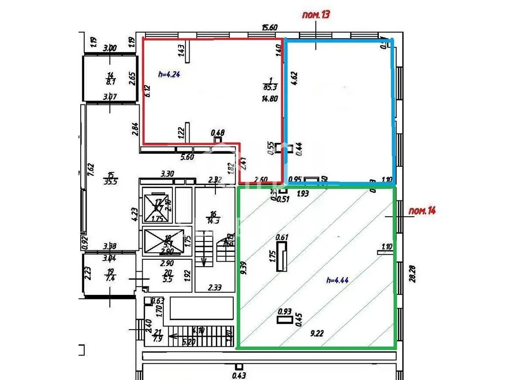 В помещении смешанная планировка, отдельный вход с фасада, высота потолка 3,5 м, витринные окна по фасаду. Электрическая мощность 46 кВт.