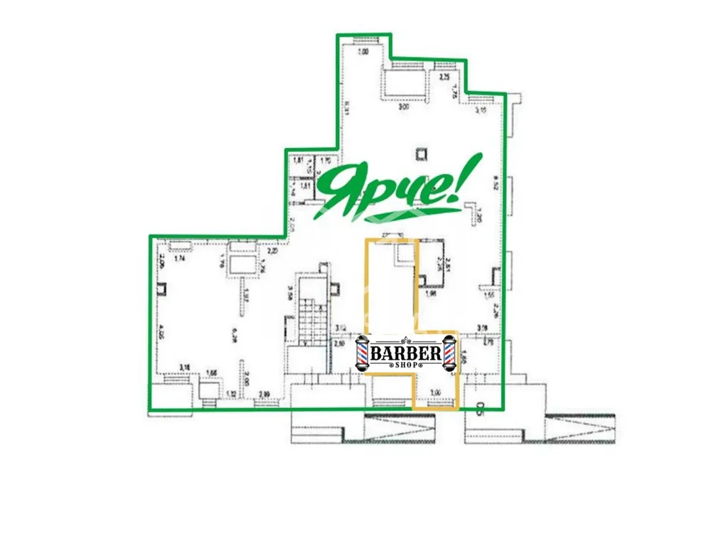 2. Барбершоп 30 м2, потенциальная месячная арендная плата 50 000 рублей.