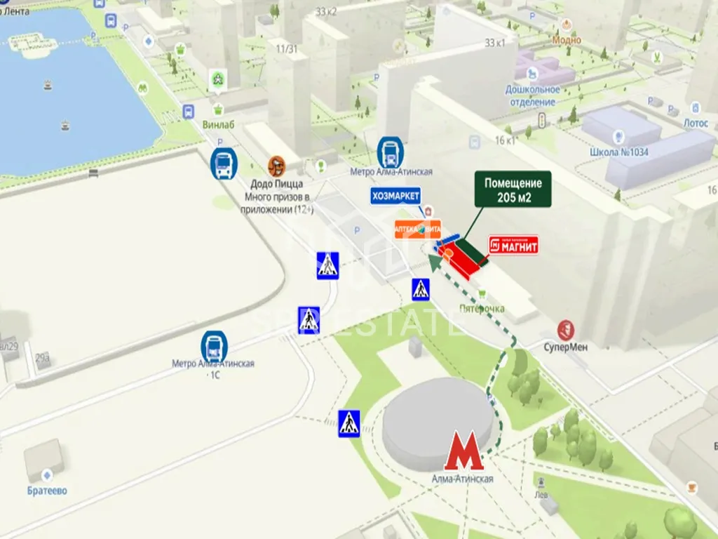 Продажа торгового помещения площадью 205,8 м2 расположенного по адресу: Москва, Братеевская улица, 16к1 (1 минут пешком от метро Алма-Атинская).