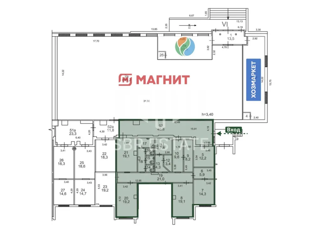 В помещении открытая планировка, отдельный вход с фасада, высота потолка 3,4 м. Электрическая мощность 37 кВт.