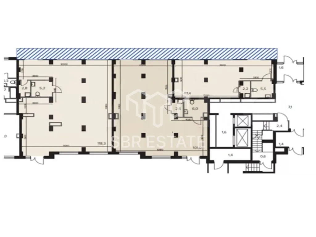 В помещении открытая планировка, отдельный вход с фасада, высота потолка 5 м, витринные окна по фасаду. Электрическая мощность 100 кВт.