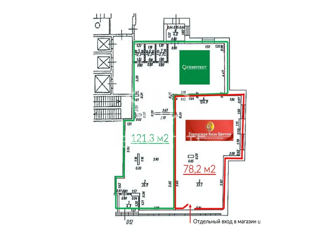 Арендаторы: лаборатория Гемотест площадью 121,3 м2 и Городская База цветов площадью 78,2 м2, общая месячная арендная плата 263 000 рублей. Договор аренды подписан с января 2022 года. Безусловная ежегодная индексация 5%. Окупаемость 11 лет.