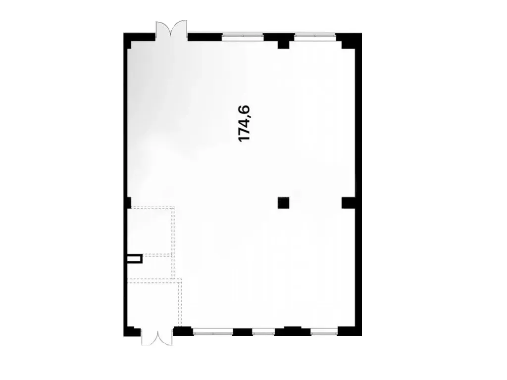 Помещение площадью 174 м2 располагается на 1 этаже, открытая планировка, отдельный вход с фасада, высота потолка 3,4 м, витринные окна по фасаду. Электрическая мощность 35 кВт., можно увеличить. Помещение под отделку. Парковка перед фасадом. Место для размещения рекламы на фасаде. Передача ключей сентябрь 2025 года.