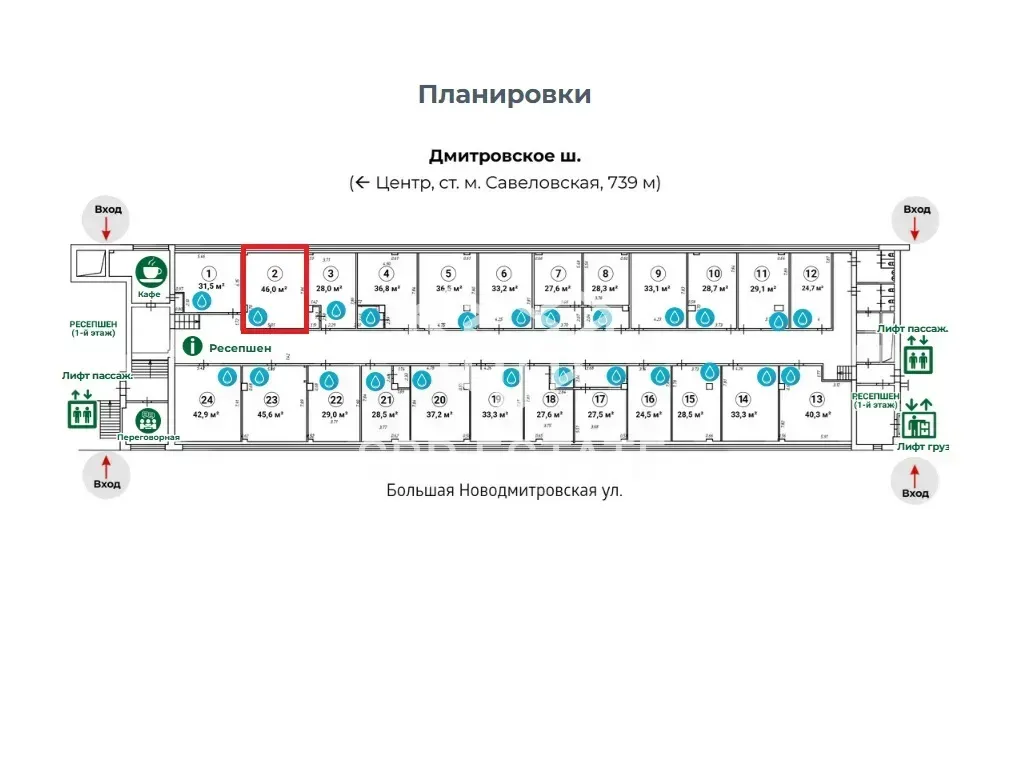Продажа офисного помещения площадью 46 м2 с арендатором на ул. Большая Новодмитровская, 23, стр. 2 (10 минут пешком от метро Савеловская).