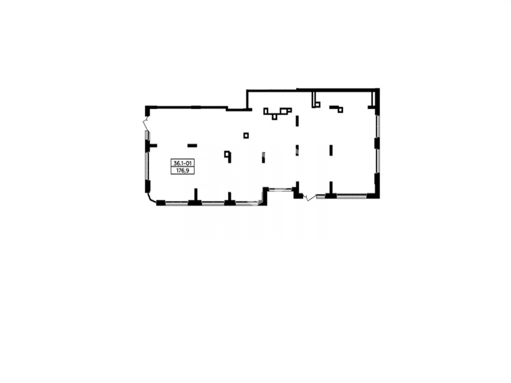 Помещение площадью 176,9 м2, располагается на 1 этаже, открытая планировка, отдельный вход с фасада, высота потолка 4 м, витринные окна по фасаду. Электрическая мощность 35 кВт. Парковка перед фасадом. Место для размещения рекламы.