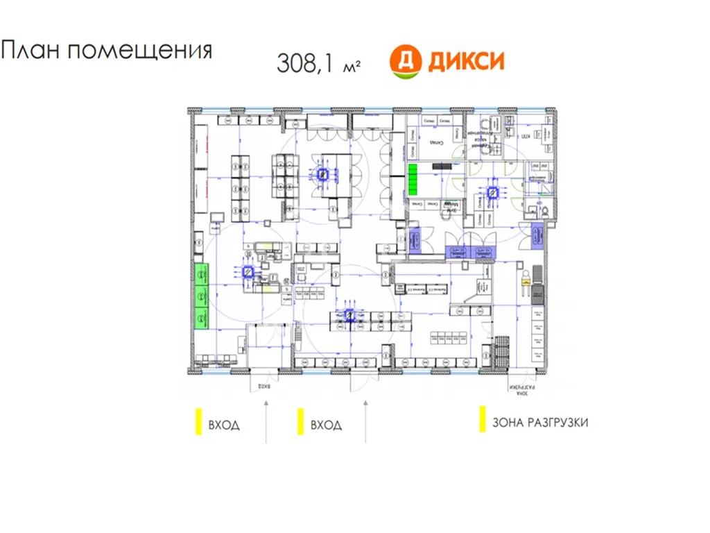 Помещение площадью 308,1 м2, располагается на 1 этаже, открытая планировка, отдельный вход с фасада, высота потолка 3 м, витринные окна по фасаду. Электрическая мощность 62 кВт. Парковка перед фасадом. Место для размещения рекламы. Введен в эксплуатацию в 2024 году.