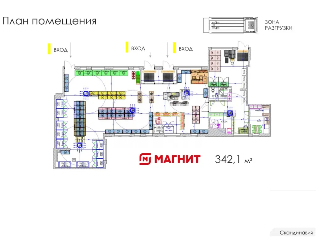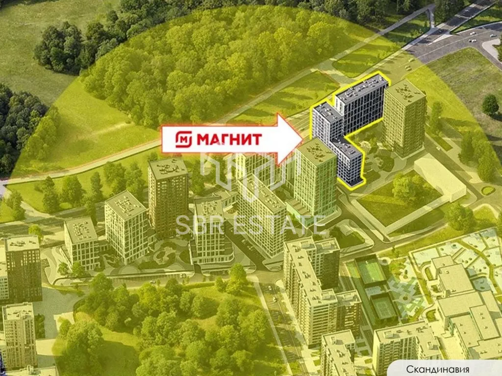 Продажа готового арендного бизнеса площадью 342,1 м2 с арендатором магазин Магнит по адресу: Новая Москва, пос. Сосенское, ЖК «Скандинавия», к. 18.2.4 – 18.2.5 (6 минут транспортом от метро Потапово). 1 линия домов.