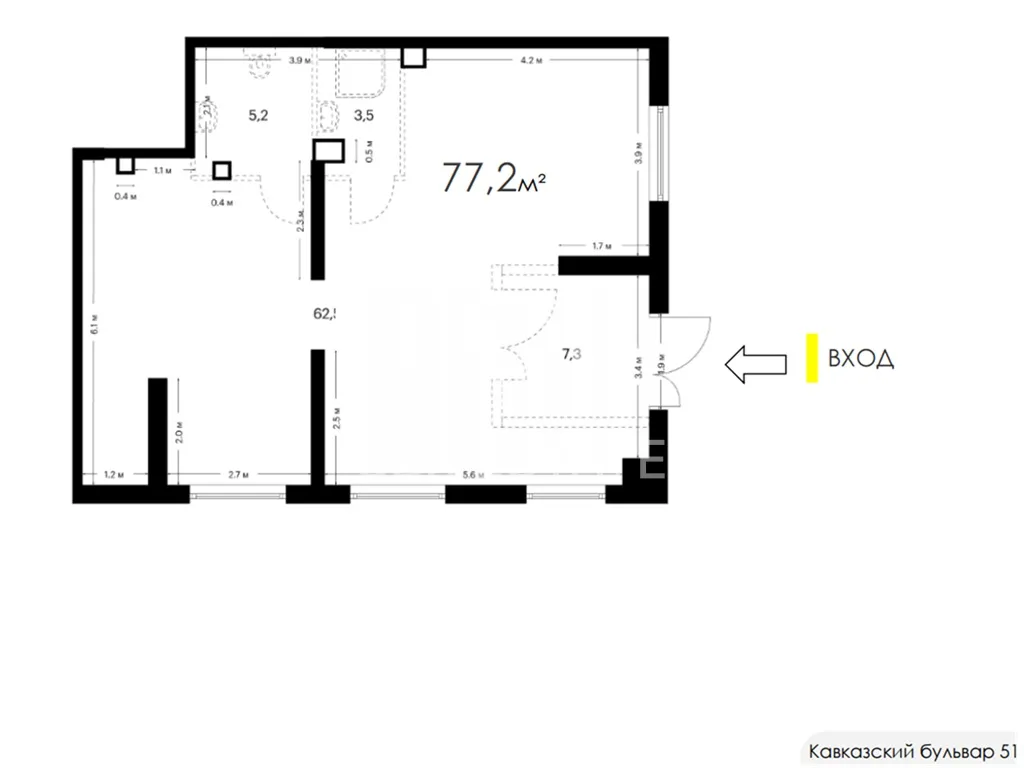Продажа коммерческого помещения площадью 77,2 м2 на ул. Кавказский бульвар, 51к2 (16 минут транспортом от метро Кантемировская). 1 линия домов.