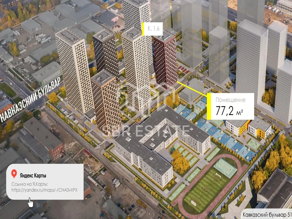 Помещение площадью 77,2 м2, располагается на 1 этаже, открытая планировка, отдельный вход с фасада, высота потолка 4 м, витринные окна по фасаду. Электрическая мощность 15 кВт. Парковка перед фасадом. Место для размещения рекламы. Введен в эксплуатацию в 3 кв. 2025 г.