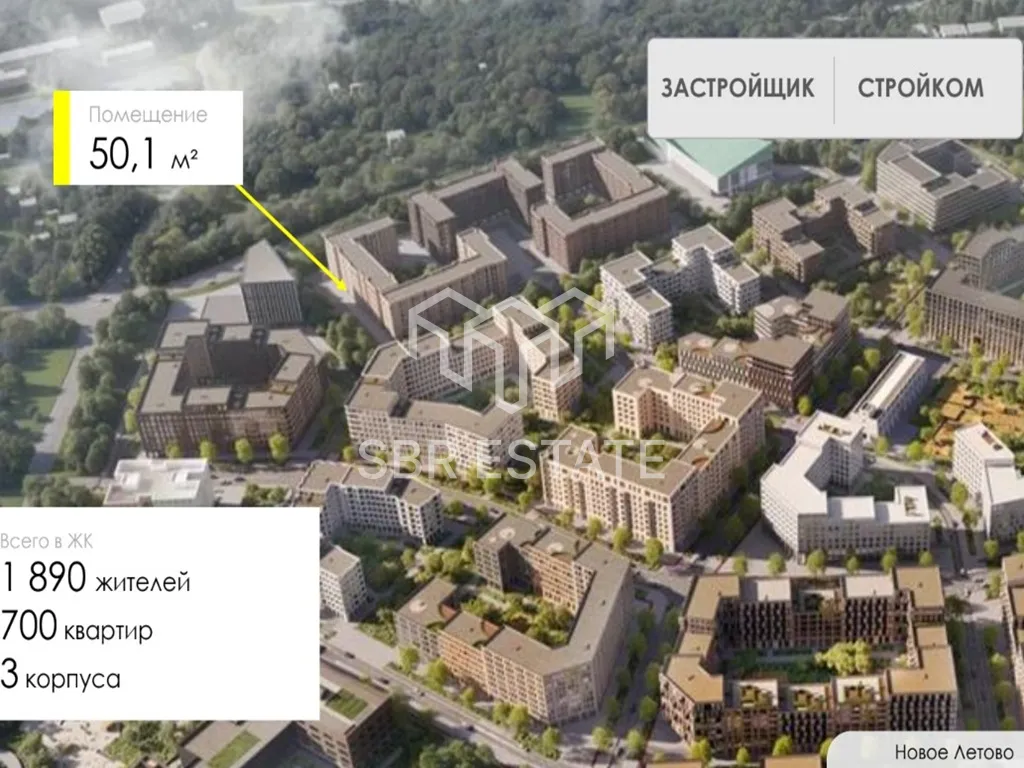 Продажа торгового помещения площадью 50,1 м2 в Новой Москве, пос. Сосенское, ЖК «Новое Летово», к. 1 (8 минут транспортом от метро Филатов Луг). 1 линия домов.