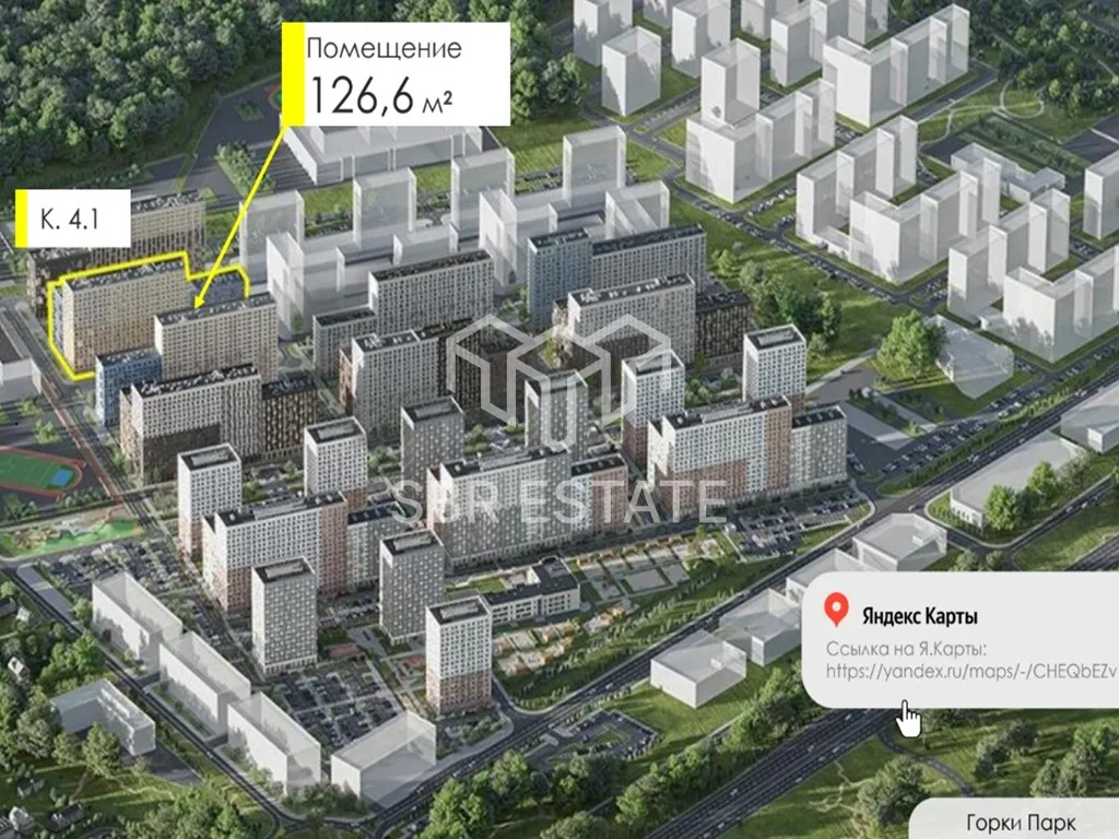 Продажа коммерческой недвижимости площадью 126,6 м2 по адресу: Московская Область, г.о. Ленинский, ул. Авиаторов к. 9 в ЖК «Горки парк», (29 минут транспорт от метро Красногвардейская). 1 линия домов.