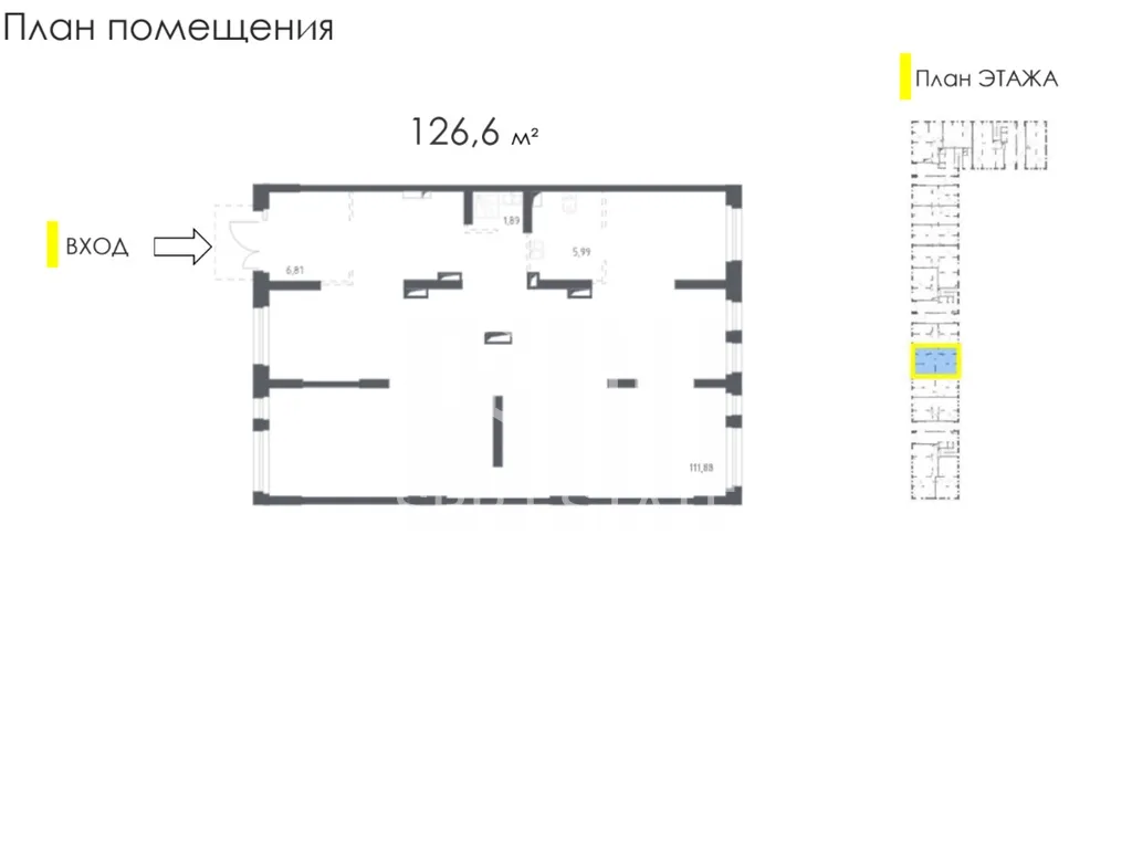 Помещение площадью 126,6 м2, располагается на 1 этаже, открытая планировка, отдельный вход с фасада, высота потолка 4 м, витринные окна по фасаду. Электрическая мощность 23 кВт. Парковка перед фасадом. Место для размещения рекламы. Дом введен в эксплуатацию в 2025 году.