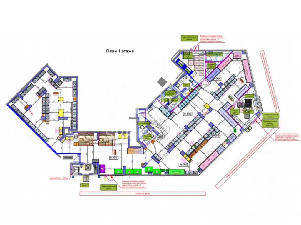 Помещение 450 м2, располагается на 1 этаже, открытая планировка, отдельный вход с фасада, высота потолка 3,3 м, витринные окна по фасаду. Электрическая мощность 60 кВт. Парковка перед фасадом. Место для размещения рекламы.