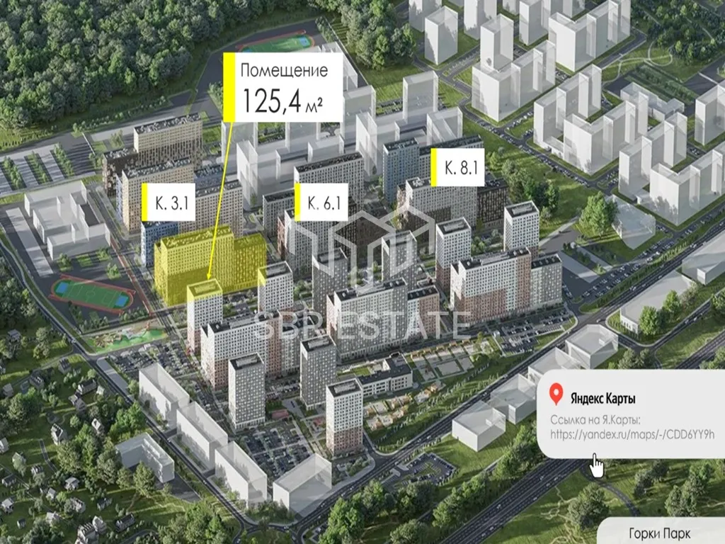 Продажа нежилого помещения площадью 125,4 м2 по адресу: Московская Область, г.о. Ленинский, дер. Коробово, ул. Авиаторов, 6, ЖК «Горки парк» (29 минут транспорт от метро Красногвардейская). 1 линия домов.