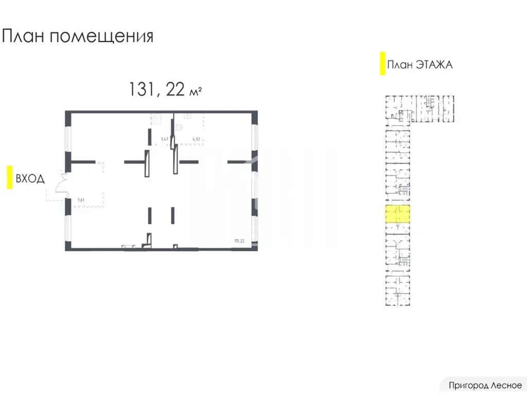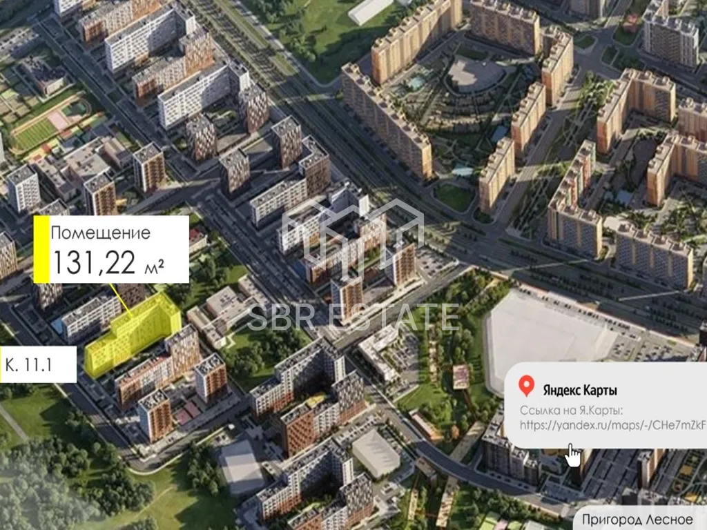 Продажа коммерческого помещения площадью 131,22 м2 по адресу: Московская Область, пгт Мисайлово, ЖК «Пригород Лесное», к 11.1 (36 минут транспортом от метро Домодедовская). 1-я линия домов.