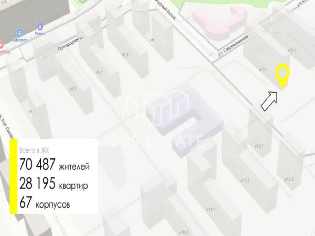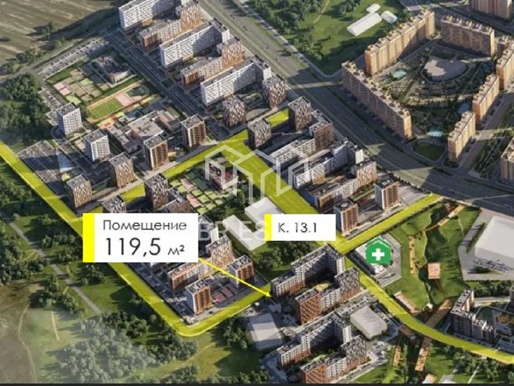 Помещение площадью 119,5 м2, располагается на 1 этаже, открытая планировка, отдельный вход с фасада, высота потолка 4 м, витринные окна по фасаду. Электрическая мощность 22 кВт. Парковка перед фасадом. Место для размещения рекламы. Ввод в эксплуатацию 3 квартал 2025 г.