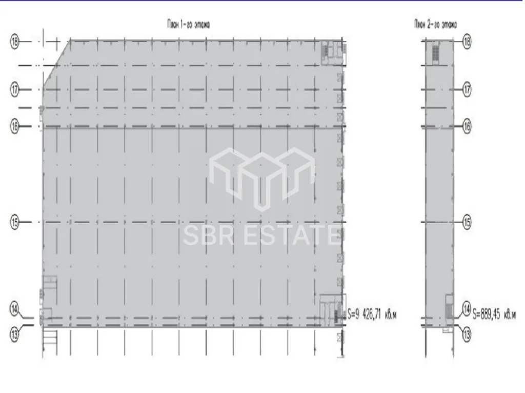 Рабочая высота - 12,5 м. Площадь пола – 9 500 м². Площадь мезонина – 799,45 м². Площадь офисов - 90 м².