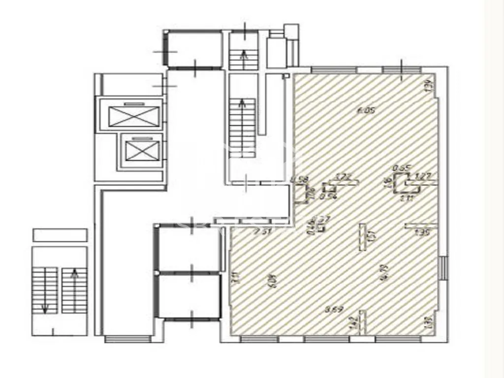 Помещение 103,7 м2, располагается на 1 этаже, открытая планировка, отдельный вход с фасада, высота потолка 6 м, витринные окна по фасаду. Электрическая мощность 21 кВт. Парковка перед фасадом. Место для размещения рекламы.