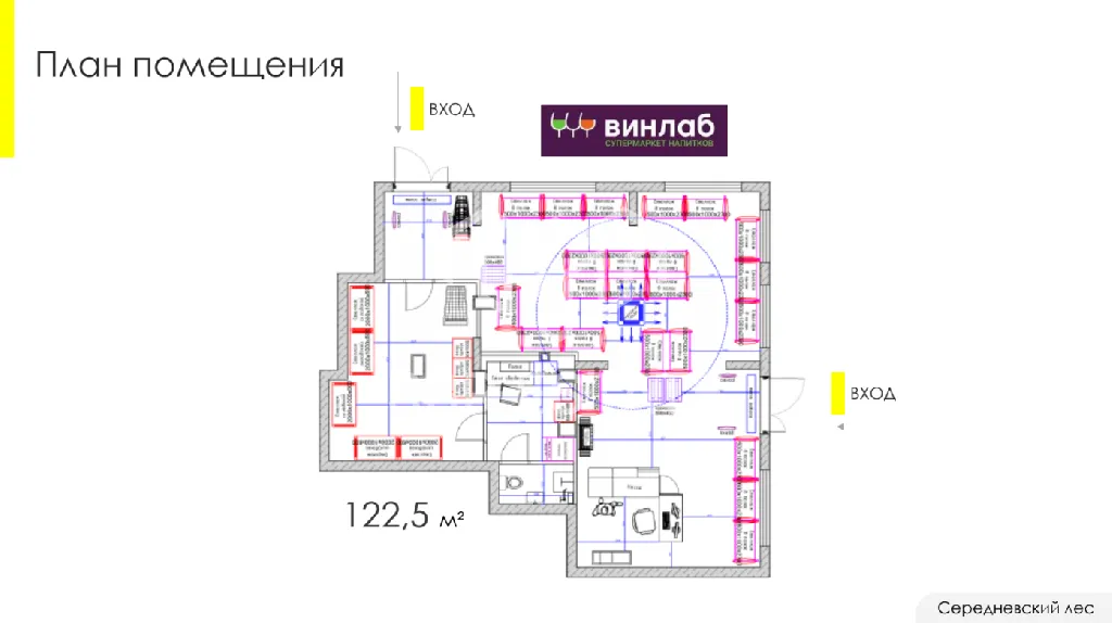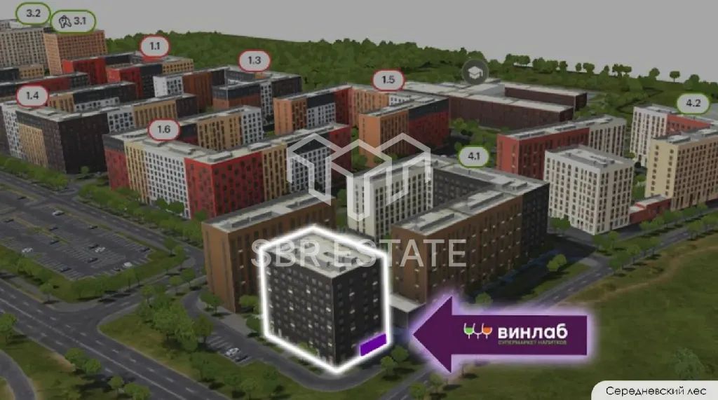 Продажа коммерческого помещения 122,5 м2 с арендатором магазин ВинЛаб по адресу: Новая Москва, пос. Филимоновское, ЖК «Середневский Лес», к. 4.1 (56 минут транспортом от метро Аэропорт Внуково). 1-я линия домов.