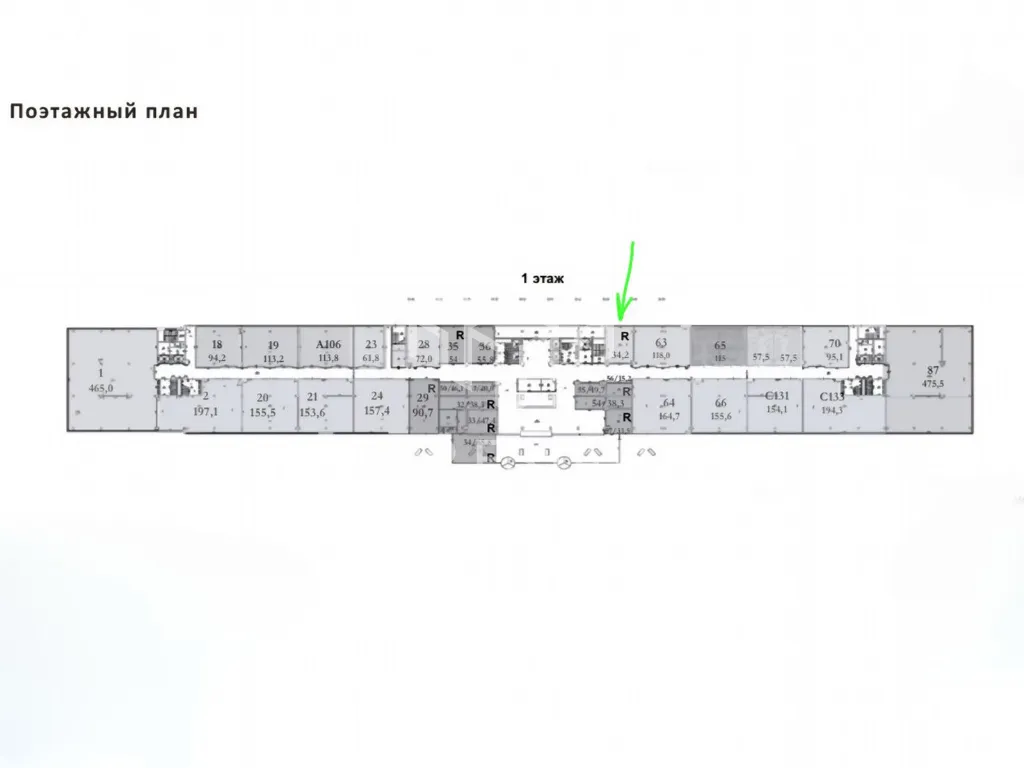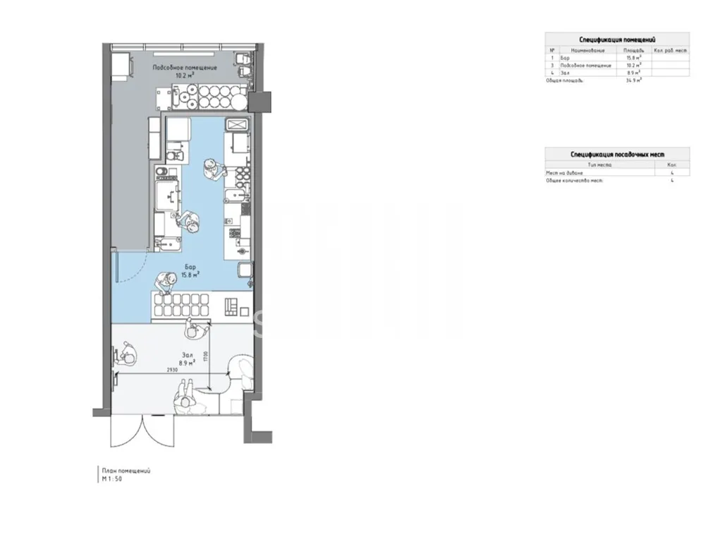 Помещение площадью 34.9 м2, располагается на 1 этаже, имеет открытую планировку, высота потолка 3,5 м. Есть парковка.