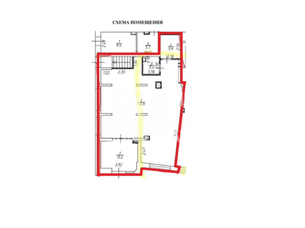 В помещении открытая планировка, отдельный вход с фасада, высота потолка 4 м, витринные окна по фасаду. Электрическая мощность 20 кВт.