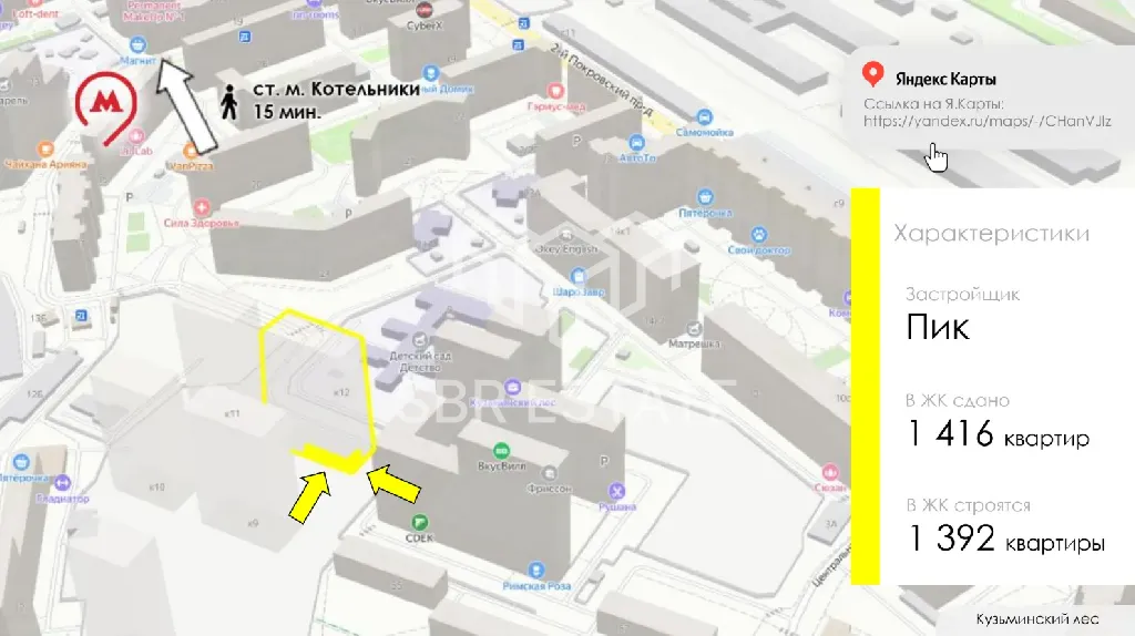Помещение располагается на первой линии жилого комплекса, в центре жилого массива, рядом остановка общественного транспорта. Интенсивный автомобильный и пешеходный трафик вдоль помещения. Помещение располагается в окружений сетевых арендаторов: ВкусВилл, аптека Здравсити.
