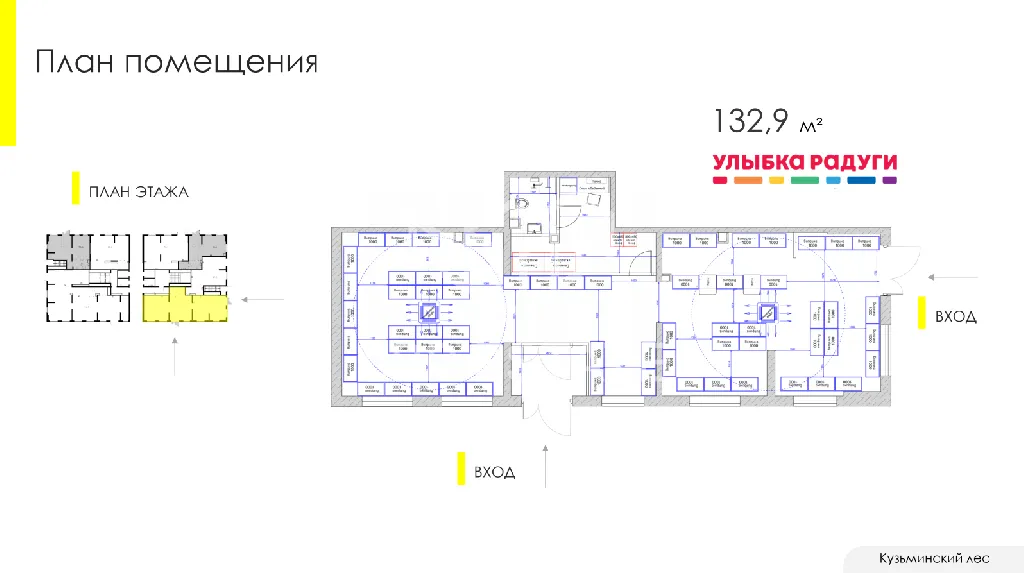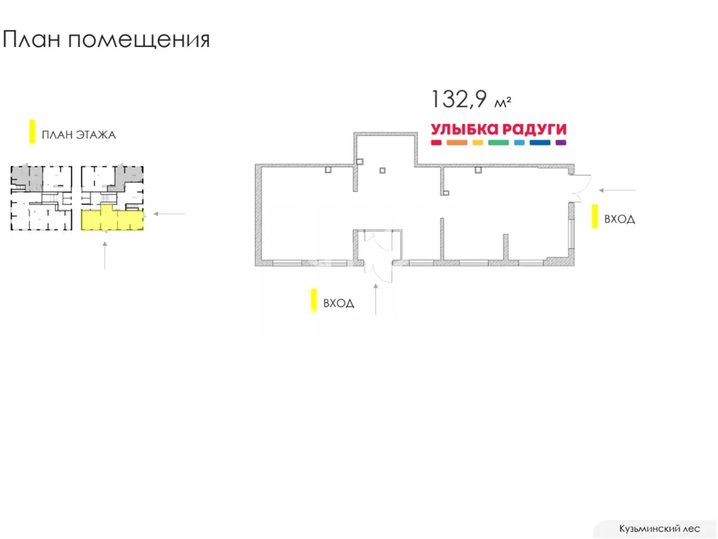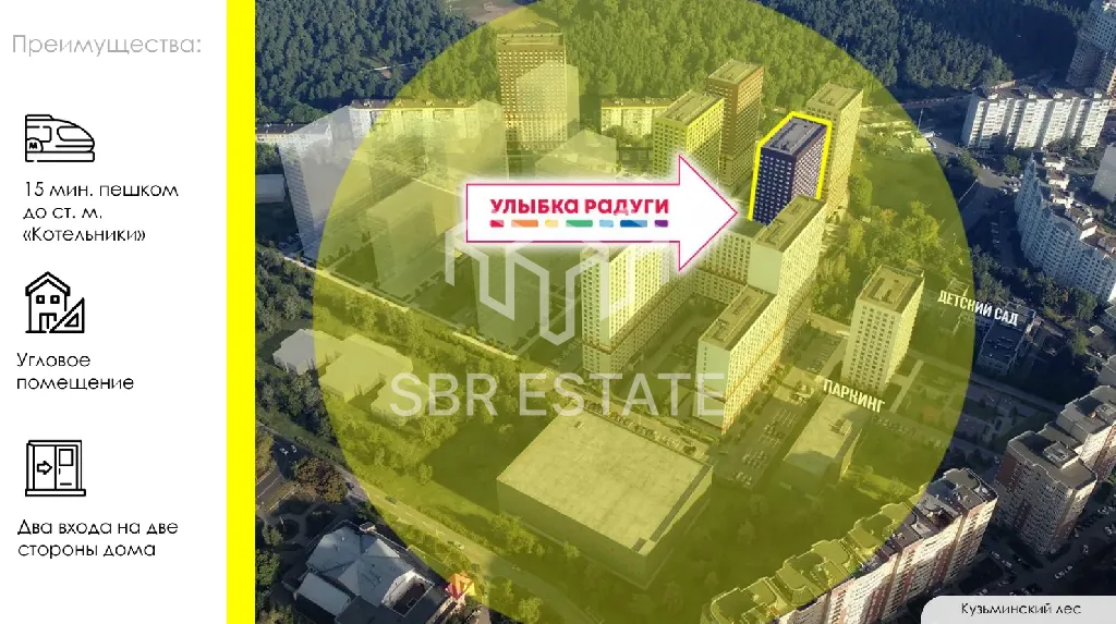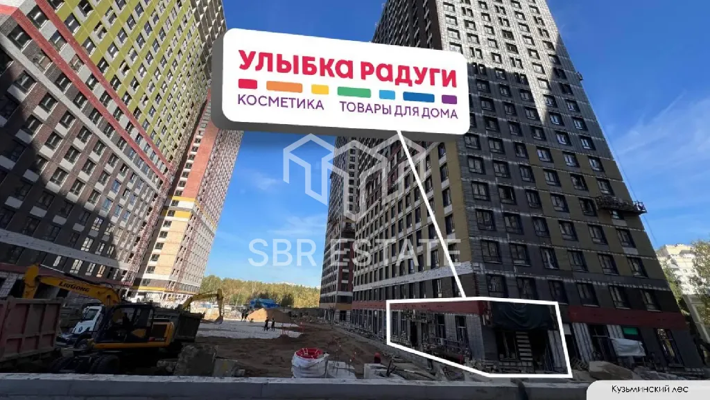 Продажа торгового помещения 132,9 м2 с арендатором магазин Улыбка Радуги по адресу: Московская Область, Котельники, микрорайон Белая Дача, д. 26 (15 минут пешком от метро Котельники). 1-я линия домов.
