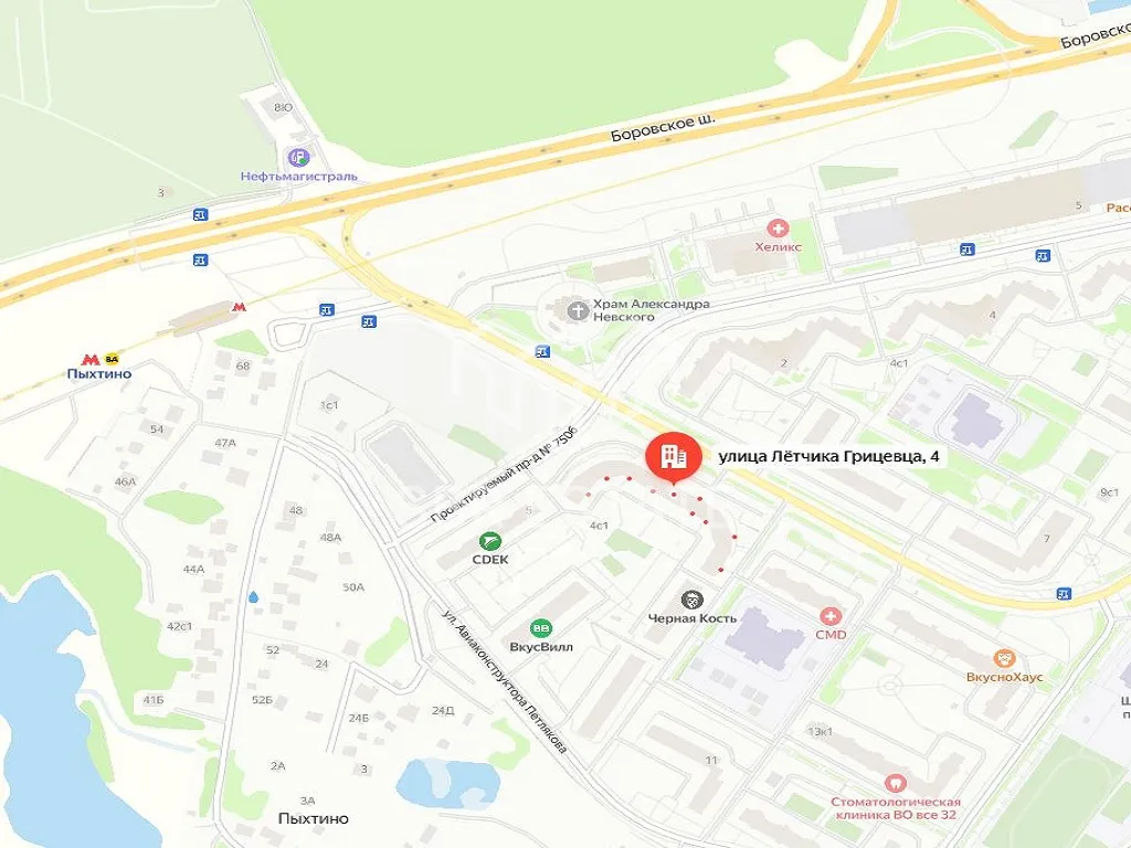 Продажа готового арендного бизнеса площадью 102,3 м2 с арендатором Красное и Белое по адресу: Новая Москва, ул. Лётчика Грицевца, 4 (2 минуты пешком от метро Пыхтино). 1 линия домов.